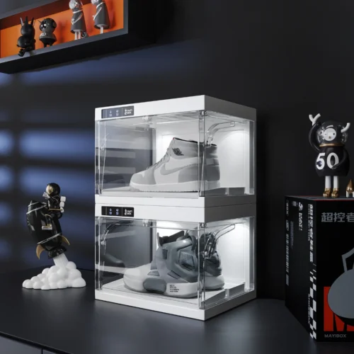 HOUZE – ‘SoleMate’ IllumiCube: Remote-Lit Shoe Display Transparent Stackable Box – Organizer | Storage