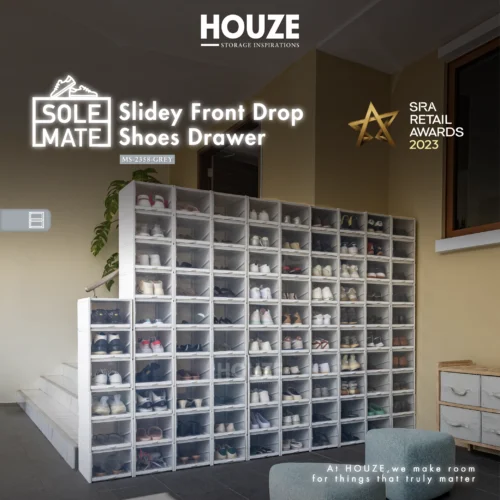 HOUZE – ‘SoleMate’ Slidey Front Drop Shoe Drawer Shoe Boxes (Pack of 4)